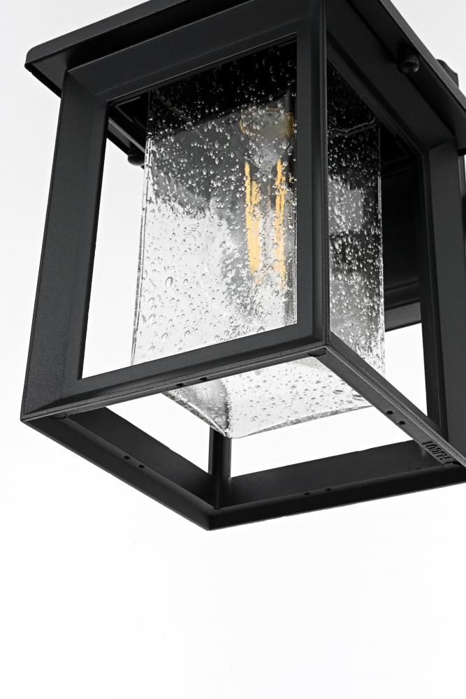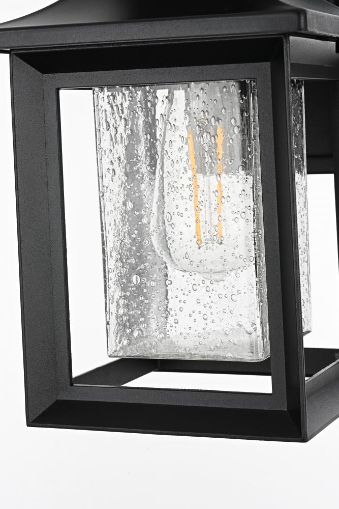 The clear seeded glass panels create a gentle light diffusion, adding warmth and charm while still showcasing the bulb for an industrial edge.