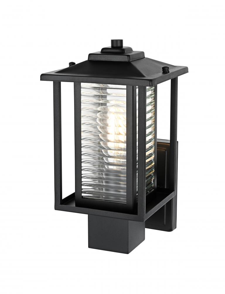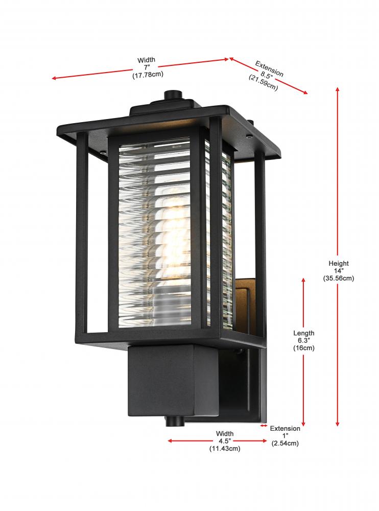 The mix of classic ribbed glass and sleek matte black iron gives this sconce a versatile style that complements both traditional and contemporary outdoor decor.