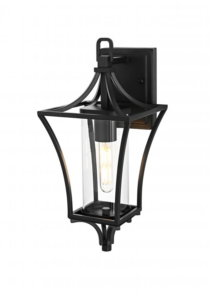 The outdoor wall sconce brings the elegance of a classic lantern into the modern age. with its beautifully curved silhouette and striking proportions.