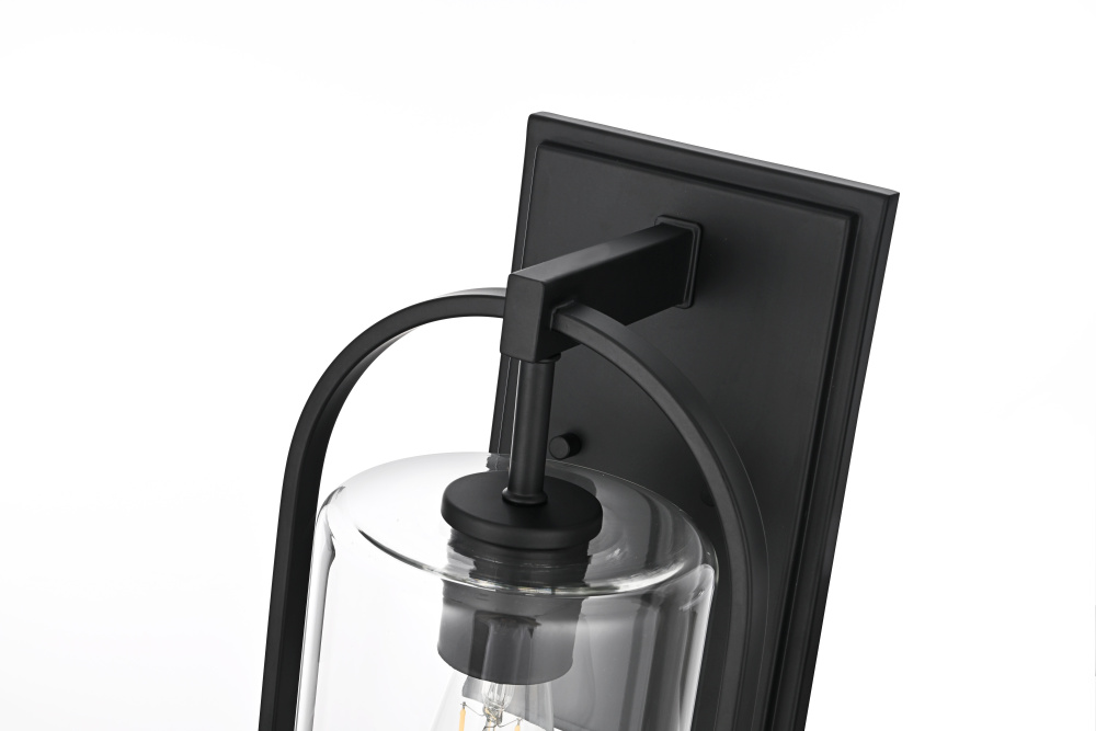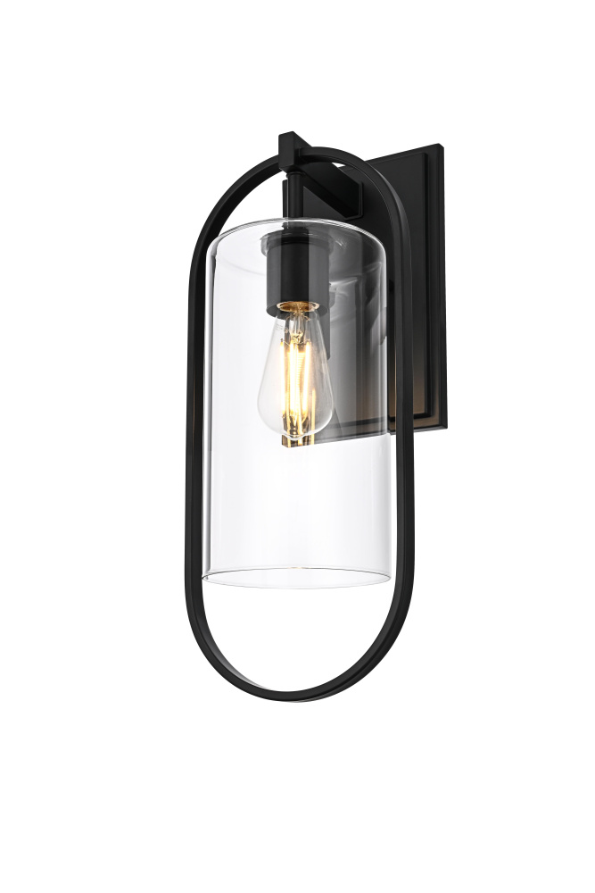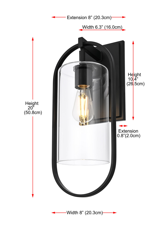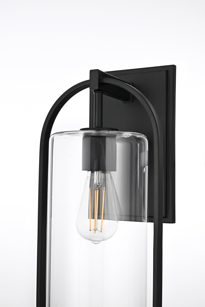 A transparent glass shade encases the bulb, allowing maximum brightness while adding a refined touch to the design.