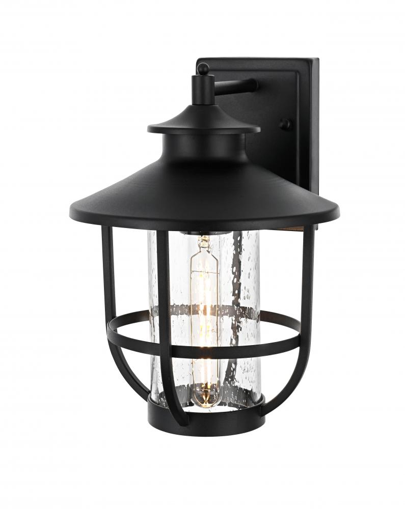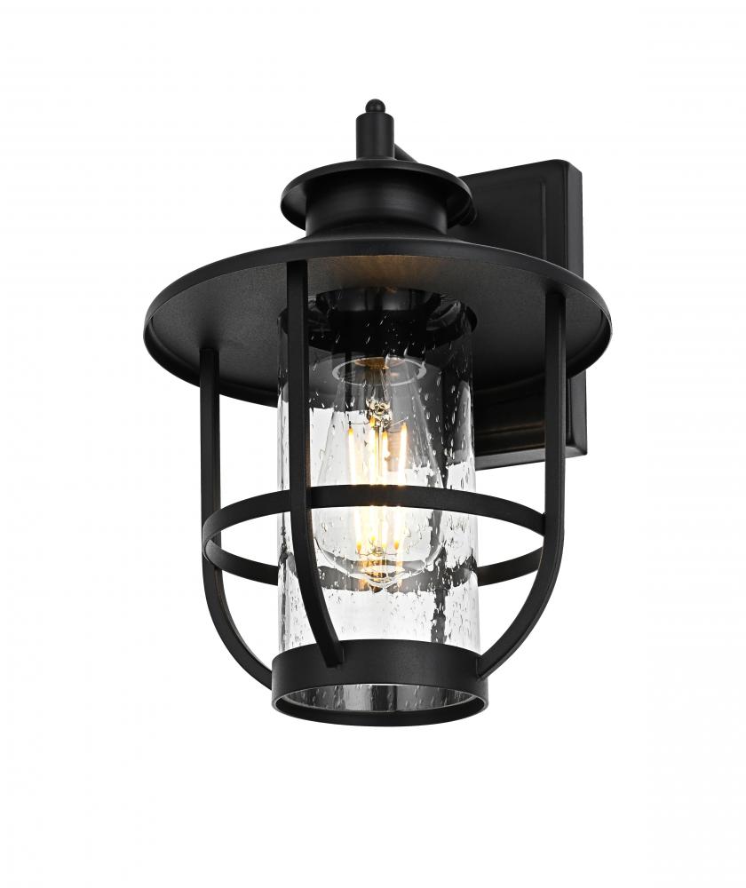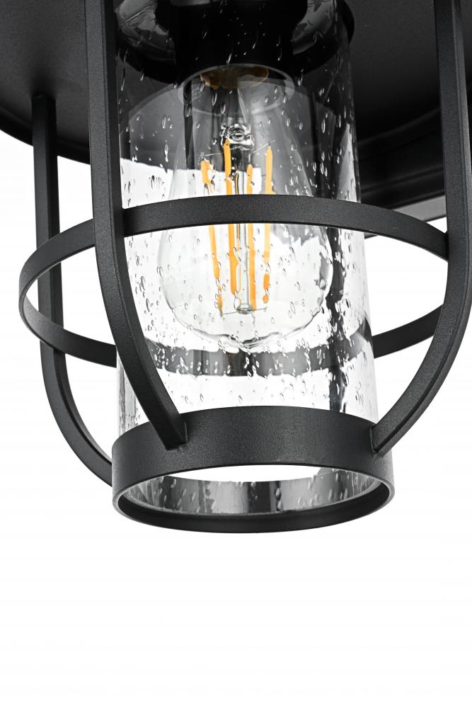 Constructed from iron and clear seeded glass, this light is built to withstand the elements while offering an aesthetically pleasing style.