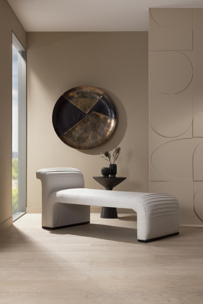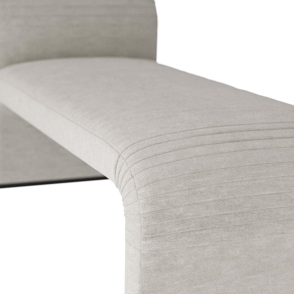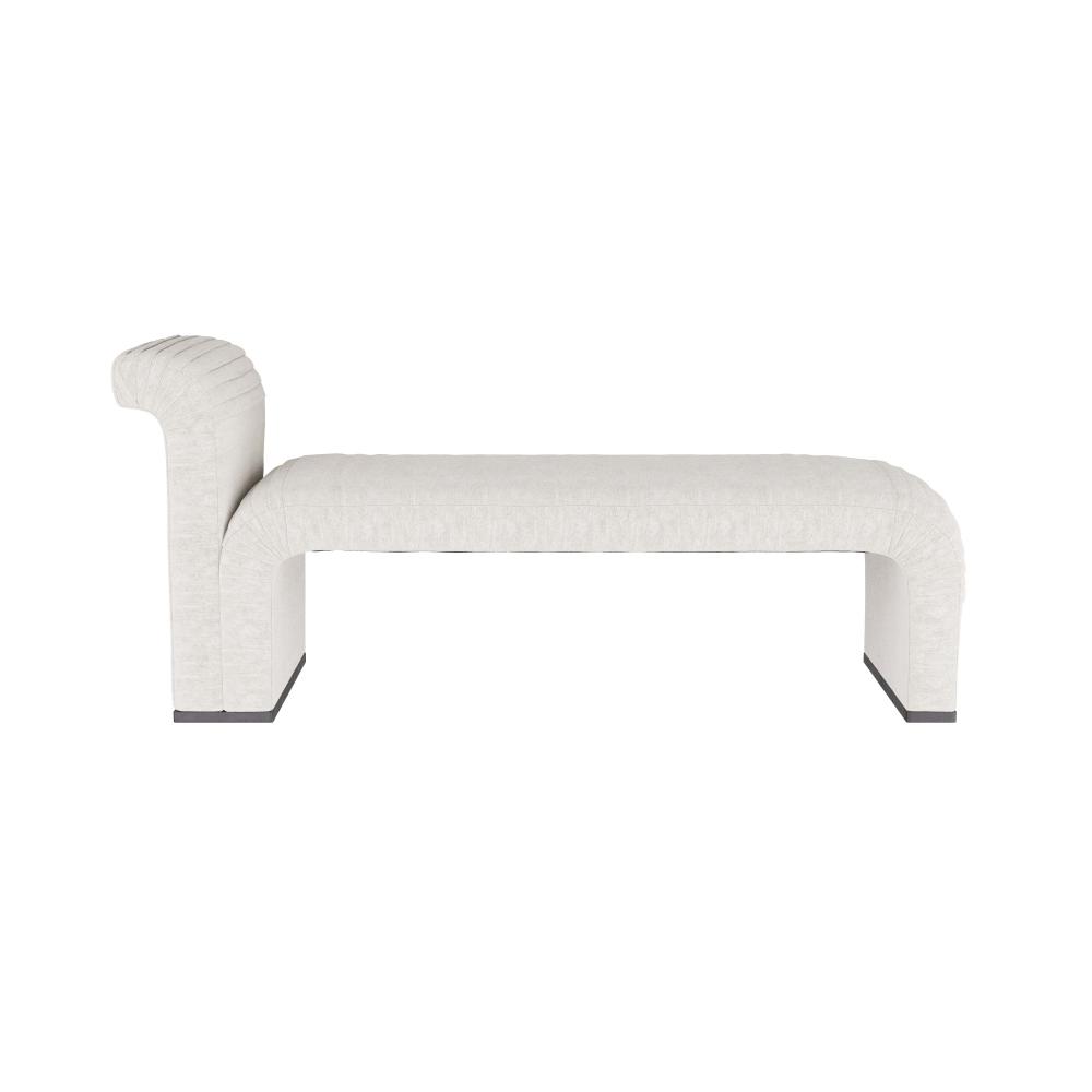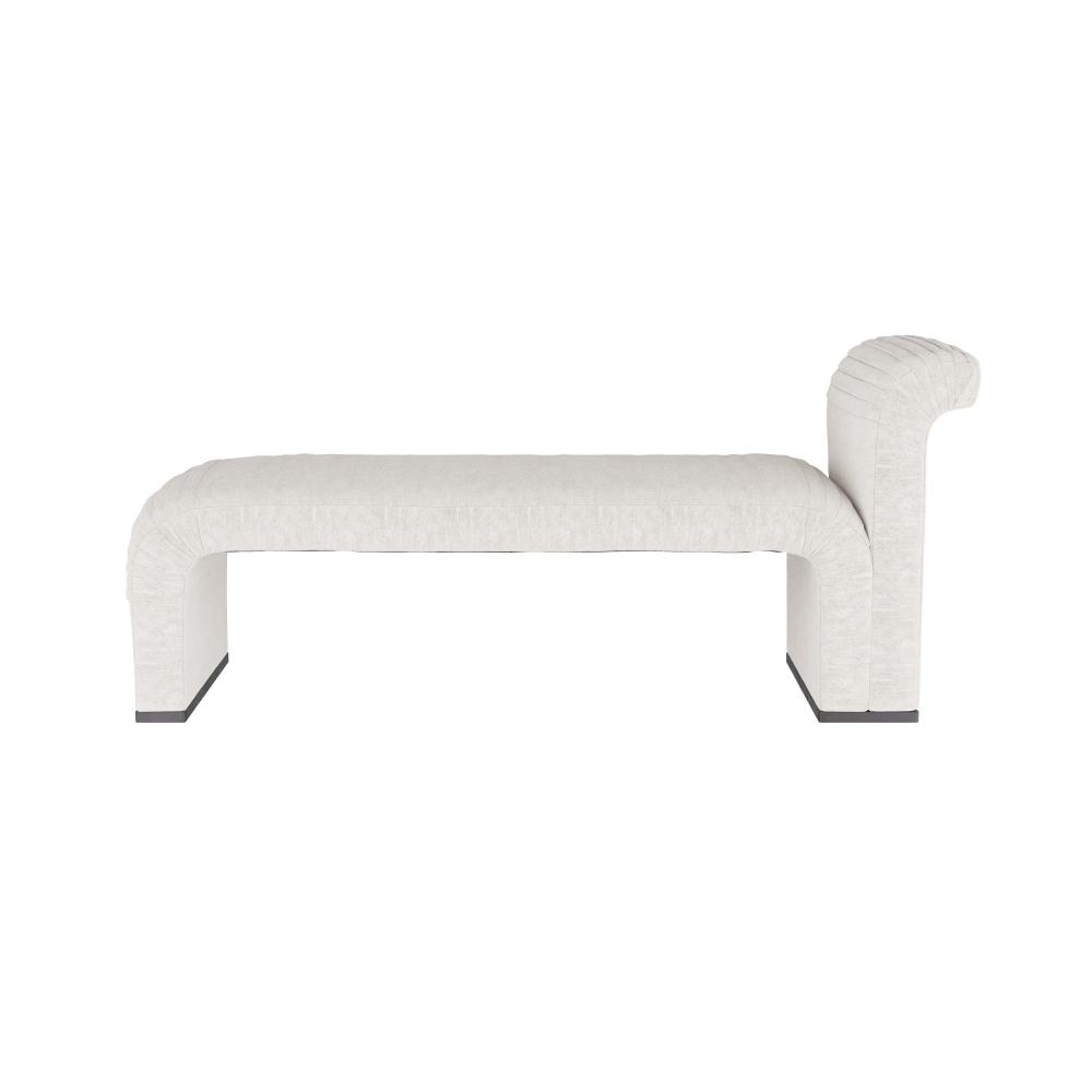 OUR WEAVER CHAISE SERVES UP STYLE AROUND EVERY BEND. DESIGNED IN A WATERFALL SILHOUETTE, THE CURVACEOUS LOUNGER IS FASHIONED WITH MOTO-INSPIRED PLEATS. THE STYLIZED CHAISE IS UPHOLSTERED IN POLAR BOUCLÉ, OVER A PLINTH BASE IN GREY ASH.
