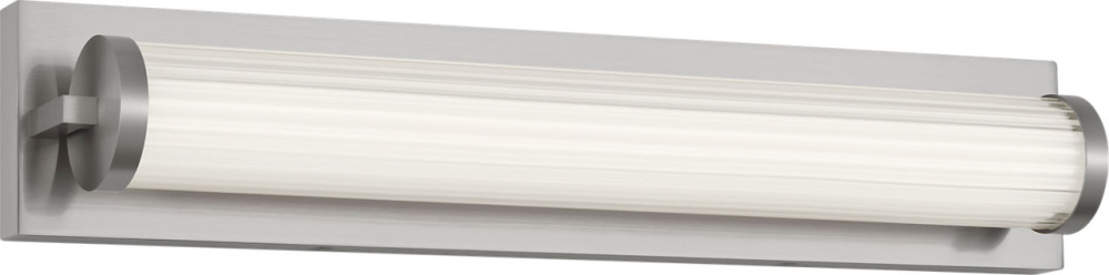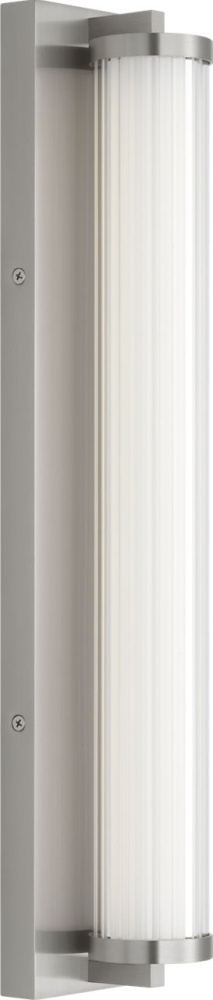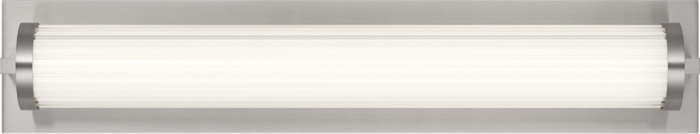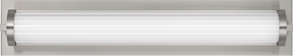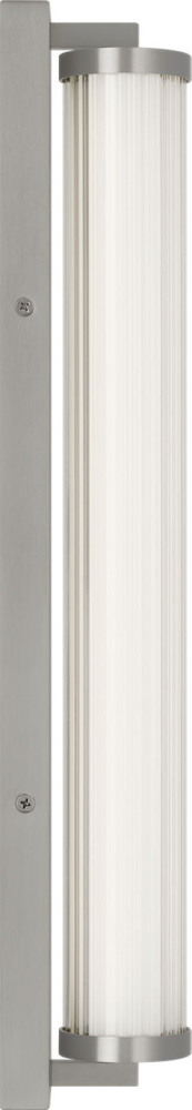 The Weston 22" Vanity combines linear symmetry with material depth, featuring a ribbed glass lens framed by a full-length metal backplate. Dedicated LED technology delivers efficient, ambient light while the textured diffuser enhances clarity and softens glare. suited for horizontal mounting in bathrooms and powder rooms where diffused illumination and visual structure are required.