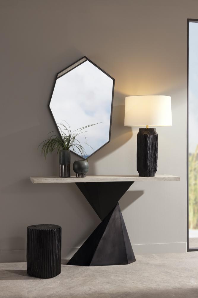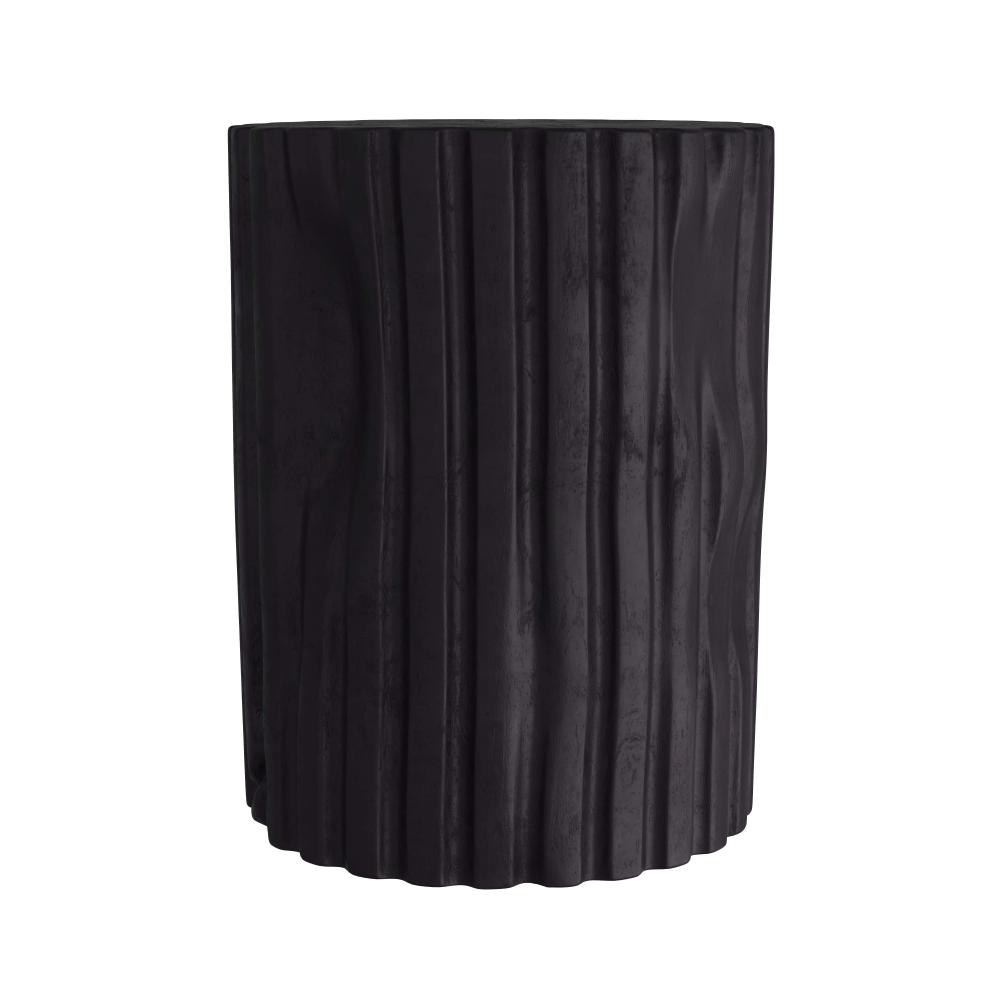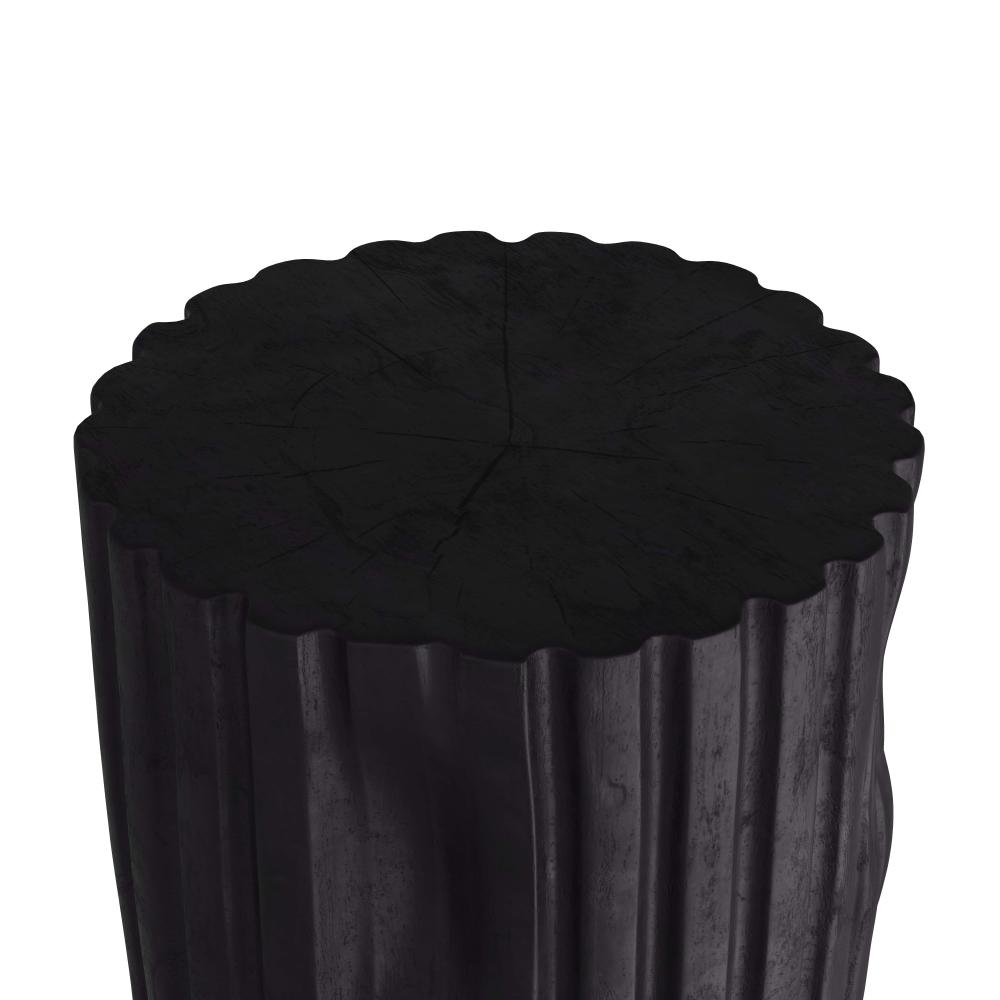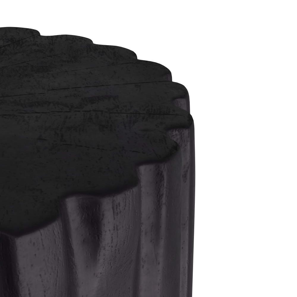 EARTHY AND ELEGANT, THE WILBUR SIDE TABLE IS DESIGNED WITH FLUTING REMINISCENT OF COLUMNS. HAND-CARVED IN SOLID, EBONY TEAK ROOT, THE ORGANIC ACCENT DISPLAYS GAUGED FEATURES—INDICATIVE OF THE NATURAL BEAUTY OF THE MATERIAL—LENDING A STUMP-LIKE, FOUND-OBJECT SENSIBILITY. FINISH WILL VARY.
