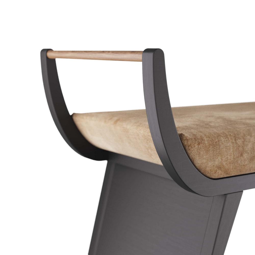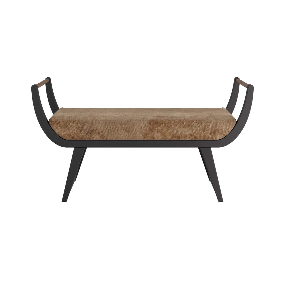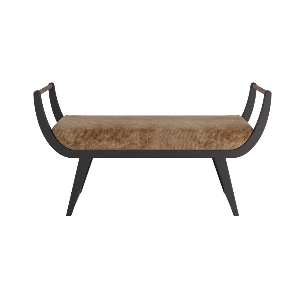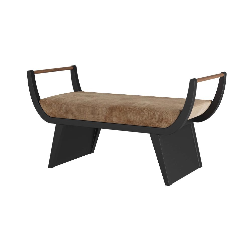 ELEGANTLY APPOINTED IN A LUSTROUS HARVEST VELVET, OUR MIDCENTURY-INFLUENCED WINSTON BENCH DRESSES UP ANY SPACE. MODERN AND TIMELESS, THE SEAT IS DESIGNED WITH SLED-LEGS IN EBONIZED ACACIA WOOD, AND FEATURES BRASS-CLAD ARM DETAILING. FINISH WILL VARY.