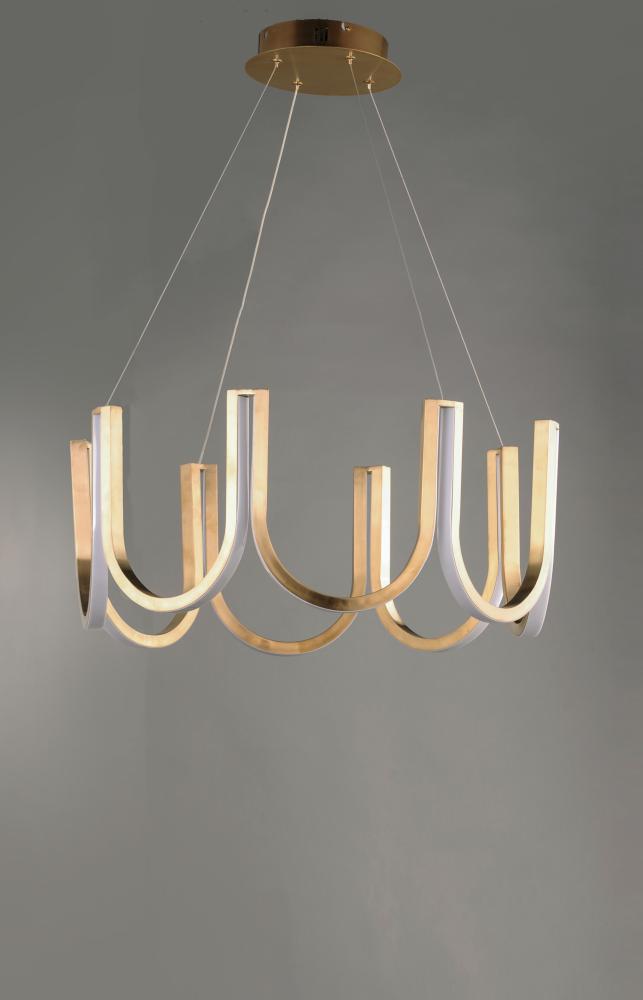 Sections of U shaped channel finished in a rich Brushed Champagne are combined in a cylindrical shape to form this sensational look. Lenses are mounted on the outside to boost the light emitted from below.