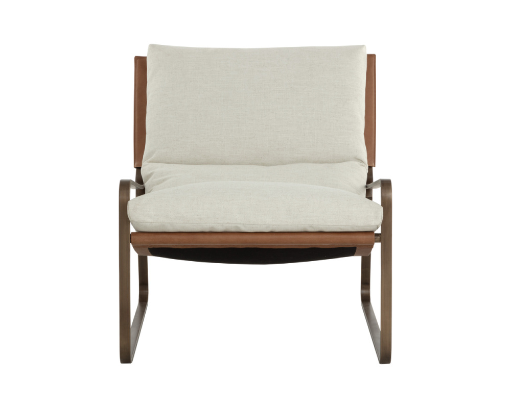 Zancor Lounge Chair - Antique Brass - Geralt Linen - Tan Leather