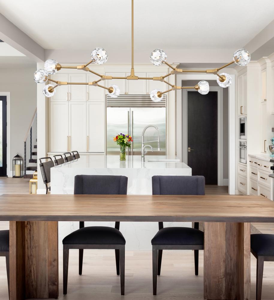 Hexagonal and pentagonal facets on the 4 inch crystal spheres tastefully diffuses the soft illumination from each arm