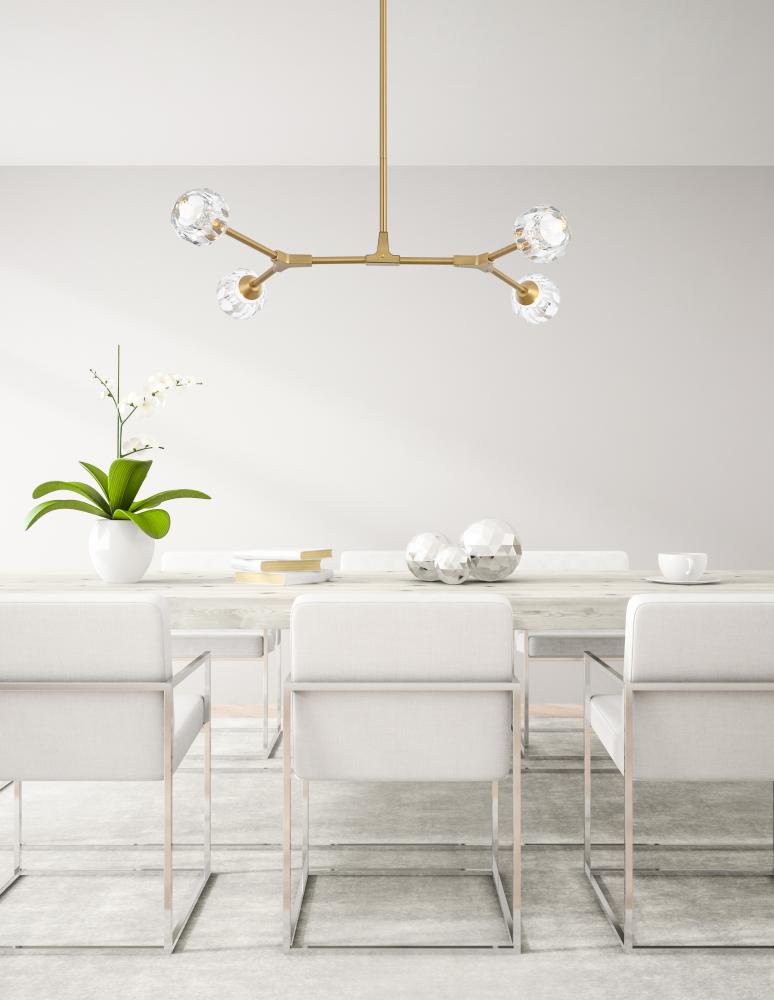 Hexagonal and pentagonal facets on the 4 inch crystal spheres tastefully diffuses the soft illumination from each arm
