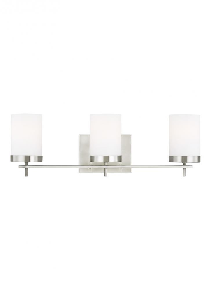 The Zire three light vanity fixture in brushed nickel is an ENERGY STAR® qualified lighting fixture that uses LED bulbs to save you both time and money. Zire embodies simple clean lines in three finishes that strike a perfect balance of elegant yet minimalist design.